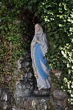 Auf dem oberen Kirchberg befindet sich östlich eine Kopie der Mariengrotte von Lourdes. Westlich gelegen befindet sich eine Kreuzigungsgruppe. Die Kreuzigungsgruppe wurde im Jahre 1813 zu Ehren Kaiser Napoleons I. von Frankreich errichtet. Im Volksmund wird es daher auch als Napoleonskreuz beschrieben, wenngleich die Bezeichnung Missionskreuz durch die Kreuzesinschrift geläufiger ist.
