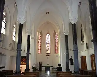 Das Krankenhaus wurde im Juli 1855 durch einen wohltätigen Verein katholischer Bürger gegründet, um „arme Kranke zur unentgeltlichen Pflege aufzunehmen“.[2] Das Krankenhaus wurde 1858 von Eduard Kramer mit einer Kapazität von 222 Betten errichtet.[3] Als die Witwe M. U. de Noël des Matthias Joseph de Noël am 7. Juni 1861 verstarb, vermachte sie dem Hospital 4.000 Taler.[4] Witwe de Noël spendete auch dem Stift „Städtisches Marienhospital, Stiftung de Noël“, das nicht identisch war mit dem St. Marien-Hospital. Es erhielt am 4. November 1863 die Korporationsrechte und wurde, unter der Leitung von Max Müller, 1864 eröffnet und durch Erzbischof Johannes von Geissel eingeweiht, 1875 und 1879 baulich erweitert.[5] Im Jahre 1883 schuf August Carl Lange die dreischiffige, neogotische Hallenkapelle.[6]