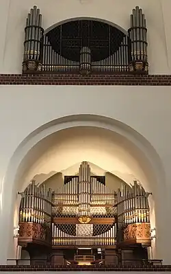 Die Orgel ist ausführlich auf der Internetseite der Gemeinde dokumentiert.[4] Ihre Disposition kann ebenfalls dort eingesehen werden.[5] Es sind zwei CD-Aufnahmen von der Orgel erhältlich.[6] Am 9. Juni 2019 wurde aus Anlass der Wiedereinweihung der restaurierten Orgel die Pfingstsonntagsmesse aus St. Marien live im Deutschlandfunk übertragen.[7] Prominentester Organist der Gemeinde war von 1929 bis 1933 der Komponist und spätere Kirchenmusikprofessor Joseph Ahrens, der 1934 an die St.-Hedwigs-Kathedrale wechselte und bereits 1931 zum Organisten der Berliner Philharmoniker berufen wurde. Einige seiner frühen Orgelkompositionen sind während seiner Jahre in St. Marien entstanden.[2]