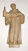 - Die Kanzel aus der ersten Hälfte des 17. Jahrhunderts befindet sich an der fensterlosen Nordwand. Auf dem Schalldeckel befindet sich eine Figur, die einen Zisterzienser (möglicherweise den Heiligen Bernhard von Clairvaux) darstellt.[5]