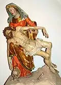 - Die aus Weichholz gefertigte Pietà unter der Orgelempore beim Haupteingang stammt aus dem 18. Jahrhundert.