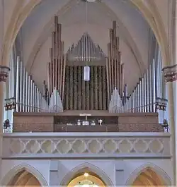Die Orgel der Kirche wurde 1954 von der Werkstatt Hugo Mayer Orgelbau (Saarbrücken-Brebach) im Auftrag der Werkstatt E. F. Walcker (Ludwigsburg) als deren opus 3019 erbaut. Die Orgelweihe fand am 31. Januar 1954 statt. Die Orgel erhielt den ehemaligen Spieltisch der Klais-Orgel aus der Christkönig-Kirche (St. Arnual), der dort 1953 durch den heutigen Viermanualigen ersetzt worden war. 1980 wurde die Orgel einer Renovierung und Reinigung durch die Werkstatt Hugo Mayer Orgelbau (Heusweiler) unterzogen. Das auf einer Empore aufgestellte Instrument mit freistehendem Spieltisch besitzt 36 Register, verteilt auf drei Manuale und Pedal, sowie elektropneumatische Kegelladen. Das Gehäuse ist ein Freipfeifenprospekt.[3]