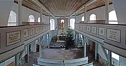 An der Brüstung der Empore für die Orgel ist eine geschnitzte gotische Statue eines Bischofs vorhanden, der ein Modell einer Kirche hält. Die Orgel mit 7 Registern, verteilt auf ein Manual und Pedal, wurde 1840 vom Orgelbauer Knauf geschaffen. Sie beherbergt überwiegend Holzpfeifen.[2]