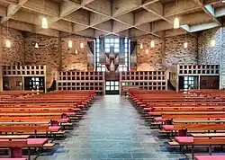 Die Orgel aus der Werkstatt von Orgelbau Sandtner mit 20 Registern auf zwei Manualen und Pedal stammt von 1974.[3] Darunter ist etwas versteckt eine Kriegergedächtniskapelle eingefügt.[4][5][6]
