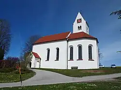 Die im Kern spätgotische Saalkirche wurde 1682/83 verändert und 1701/02 umgebaut. Sie besteht aus einem Langhaus, einem eingezogenen, dreiseitig geschlossenen Chor im Osten und einem Chorflankenturm an der Nordwand des Chors. Sein oberstes Geschoss beherbergt hinter den als Biforien gestalteten Klangarkaden den Glockenstuhl. Darauf sitzt quer ein Satteldach zwischen den Giebeln mit den Zifferblättern der Turmuhr. Der Innenraum des Langhauses ist mit einer Flachdecke überspannt, der des Chors mit einem Stichkappengewölbe über Pilastern. Der Hochaltar stammt aus der Pfarrkirche St. Afra in Betzigau.