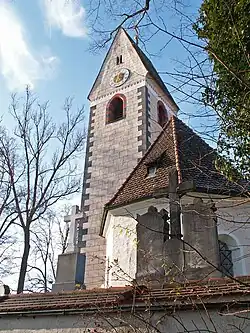 Umgeben ist die Kirche von einer verputzten Bruchstein-Friedhofsmauer aus dem 15./16. Jahrhundert.[1]