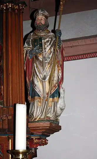 Vor dem Halbrund des ebenfalls mit farbig verglasten Spitzbogenfenstern versehenen Chores steht der Hochaltar. Er ist ausgestattet mit einem Tabernakel und dem auf ihm stehenden, obligatorischen Altarkreuz. Zu beiden Seiten von diesem befinden sich Bilder mit Darstellungen aus dem Leben Jesu. Der Altar wird flankiert von alten geschnitzten Figuren des Martinus als Bischof und dem als Heiligen verehrten ägyptischen Mönch Antonius.