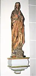 | 20 | Paulus | Holz | 117 cm | Seitenschiff: Das Attribut der Paulusfigur ist nicht mehr vorhanden, es könnte sich um eine Schriftrolle gehandelt haben, die er in der Hand trug. Die Figur stand ehemals in der Kreuzkapelle und wurde 1988, aus Sicherheitsgründen, hier aufgestellt. | um 1500 | |