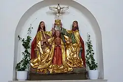 - Ein spätgotisches Halbrelief, das die Krönung Mariens darstellt, ist um 1500 entstanden.