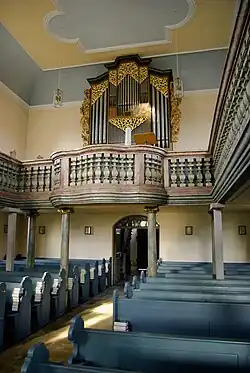 Zur Kirchenausstattung gehört ein Kanzelaltar. Die Orgel auf der Empore hat 14 Register auf zwei Manualen und Pedal. Sie wurde 1960 von der Firma E. F. Walcker & Cie. erbaut.[1]