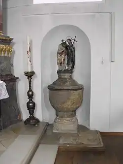 Die Friedhofsummauerung vom 17./18. Jahrhundert besitzt Strebepfeiler, der Zugang erfolgt vom Westen und vom Osten her.[7] Im Friedhofsbereich steht im Südosten eine katholische Wallfahrtskapelle „Mariä Himmelfahrt“ aus der Barockzeit.[8] Am „Kapellenacker“ stand fünf Jahrhunderte lang eine dem hl. Werner geweihte Kapelle, die nach der Säkularisation verfiel.[9]