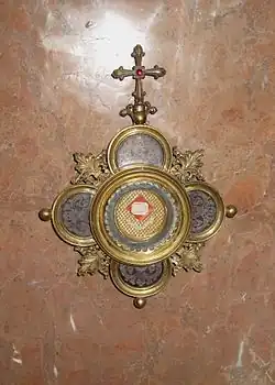 Man geht davon aus, dass schon die erste Kirche dem Heiligen Mauritius und seinen Gefährten geweiht war. Die Gemeinde ist noch heute in Besitz von Reliquien, von denen eine im Altarstein aufbewahrt wird, eine andere in einem eigenen Reliquiar. Bildnisse des Schutzpatrons finden sich im linken Seitenaltar sowie in einem Chorfenster.