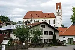 Die aus Richtung Landsberg schon von weitem sichtbare Kirche erhebt sich am Ende eines Altmoränenzugs und ist dem Erzengel Michael geweiht. Aufgrund der frühchristlichen Tradition, auf Anhöhen gelegene Kirchen dem Erzengel Michael zu weihen, ist anzunehmen, dass Michael auch schon der Patron der Vorgängerbauten war, die bis in die Zeit der Christianisierung durch Magnus von Füssen zurückreichen könnten.
