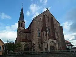 Die neugotische Hallenkirche wurde 1906 geweiht. Sie besteht aus einem dreischiffigen Langhaus, einem eingezogenen dreiseitig abgeschlossenen Chor an seiner Nordseite und einem Chorflankenturm in der Ecke Westseite Chor/Nordseite östliches Seitenschiff. Die Wände werden von Strebepfeilern gestützt, um den Gewölbeschub der Kreuzrippengewölbe aufzunehmen, mit denen die Kirchenschiffe und der Chor überspannt sind.