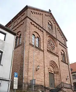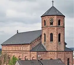 Die Kirche wurde im Stil der Neuromanik errichtet. Es handelt sich um eine Saalkirche aus roten Sandsteinquadern. Der Chorturm besitzt die Form eines Oktogons und erhebt sich über den Chor. Im Kircheninneren schließt der Chor in einer Apsis ab.