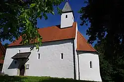 Die spätromanische Saalkirche wurde im 13. Jahrhundert erbaut. Sie besteht aus einem Langhaus und einer eingezogenen, halbrund geschlossenen Apsis im Osten. Aus dem Satteldach des Langhauses erhebt sich im Osten ein quadratischer Dachreiter, der den Glockenstuhl beherbergt und der mit einem Pyramidendach bedeckt ist, das mit Schindeln verkleidet ist.