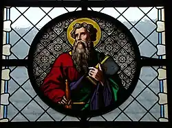 Die Glasfenster im alten Chor gehen auf eine Stiftung von 1876 zurück und stammen von dem Heidelberger Glasmaler Beuler. Sie zeigen Petrus (mit Schlüssel) und Paulus (mit Buch und Schwert).