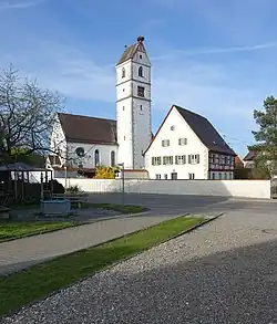 Die im Kern spätgotische Saalkirche wurde 1746 umgebaut. Sie besteht aus einem Langhaus, an dessen Südwand der Kirchturm angebaut ist, und einem dreiseitig geschlossenen Chor im Osten. Der Kirchturm wurde mit zwei Geschossen aufgestockt, das untere beherbergt die Turmuhr, das obere den Glockenstuhl, und quer mit einem Satteldach bedeckt.