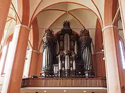 Bei der Kirche handelt es sich um eine Hallenkirche aus Backsteinen. Sie besitzt sechs Joche und einen 5/10 Chorschluss mit Halbjoch und ist 52,58 Meter lang. Die Kirche ist 26,29 Meter breit, die größte Innenhöhe beträgt 20,45 Meter. Die Hanglage erforderte im Osten starke Substruktionsbauten, welche in Form einer Unterkirche ausgeführt sind. Im Westen schließt der 79,00 Meter hohe Kirchturm an das Bauwerk.