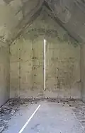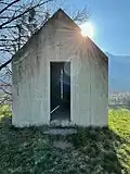 1991 begann die Planung der Kapelle. Fontanas damaliger Mitarbeiter Christian Kerez entwarf sie. Wie eine schützende Hülle stülpt sich die Kapelle über die Reste der ehemaligen Umfassungsmauer. Wände und Dach sind in Beton gegossen. Eine schmale hohe Öffnung in der Stirnwand dient als Eingang. Dank dem Standort und der Architektur wird die Bergkapelle zu einem archaischen Zeichen in der Gebirgslandschaft. Tragwerksplaner war Toni Cavigelli aus Domat/Ems.[3] Galerist Peter Blums Vorschlag, ein Betonrelief des Künstlers Helmut Federle in das Innere des Hauses zu besetzen, wurde nicht umgesetzt.