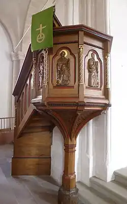 Zur Ausstattung der Kirche gehört ein auf ca. 1230/1240 datiertes Triumphkreuz.