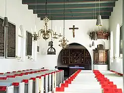 Der dreiflügelige spätgotische Schnitzaltar zeigt im Mittelschrein eine Marienkrönung, die von zwei Bischöfen flankiert wird, auf der linken Seite befindet sich Nicolaus oder Severin, rechts eine Figur, die den Dionysius darstellt. In den Seitenflügeln des Altars befinden sich die Apostel. Im 19. Jahrhundert wurde der Mittelschrein aufgrund eines strengen Luthertums aus dem Altar entfernt. An seine Stelle fügte man ein Ölbild der Thüringerin Minna von Doetinchem de Rande ein, welches das den über dem Meer wandelnden Jesus und den sinkenden Petrus zeigte. Im Jahr 1925 wurde die Marienkrönung wieder in ihren ursprünglichen Platz eingefügt.