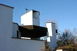 Auf der rechten Seite des Altarraums befindet sich eine Werktagskapelle mit einem zweiten, kleineren Altar. Neben den Lichtschächten, die das Tageslicht sowohl an den Wänden des Kirchenraums als auch über dem Altarraum herabfliessen lassen, besitzt die Kirche zwei Buntglasfenster, die vom Künstler Max Hellstern, Zürich geschaffen wurden. Als Besonderheit sind die Buntglasfenster nicht mit Bleiruten gefasst, sondern mit Araldit geklebt. Experimente im Glasverarbeitungsbetrieb Mäder, Zürich haben die Haltbarkeit dieser Technik bestätigt. Die bunten Scheiben bestehen aus handgegossenem Dallglas.[7]