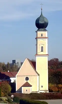 Die spätgotische Kirche wurde laut den Einträgen in der Pfarrmatrikel um 1480 erbaut. Der Turm wurde 1768 in Massivbauweise erneuert, die Zwiebelkuppel 1825 von dem Vilsbiburger Zimmerermeister Paul Himmelmayr mit Holzschindeln gedeckt. Die Westempore wurde 1865 eingezogen. Im Jahr 1992 fand eine Außenrenovierung statt, 1993 wurde die Dachkonstruktion instand gesetzt. Von Oktober 2020 bis Dezember 2021 wurde eine Innenrenovierung durchgeführt. Zuvor musste die Kirche gesperrt werden, da im Bereich des Chorbogens Risse und Verformungen der Decke sichtbar geworden und am Dachstuhl Fäulnisschäden aufgetreten waren.[1]