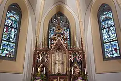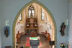 Der neogotische Hochaltar entstand im 19. Jahrhundert und besitzt einen reich verzierten Tabernakel. Der Zelebrationsaltar wurde 1976 von dem Adenauer Künstler Georg Gehring geschaffen. Er stellt den brennenden Dornbusch als Zeichen der Gegenwart Gottes dar.