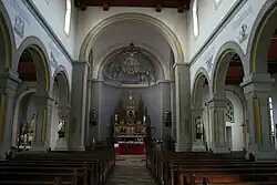 Die Kirche ist eine dreischiffige neuromanische Pfeilerbasilika.