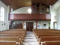Die Orgel wurde 1991 von der Firma Hugo Mayer Orgelbau (Heusweiler) gebaut. Das Schleifladen-Instrument, das auf der Empore steht und einen eingebauten Spielschrank besitzt, verfügt über 16 Register, verteilt auf 2 Manuale und Pedal. Mehrere ältere Register (Holzflöte 8′, Sifflet 2′, Salicional 8′, Vox coelestis 8′ und Subbaß 16′) stammen wohl aus einer in den 1960er Jahren gebraucht aufgestellten Vorgängerorgel. Die Spiel- und Registertraktur ist mechanisch, und die Disposition lautet wie folgt:[5]