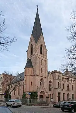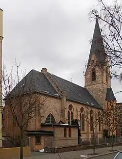Bei der auf dem Eckgrundstück Körnerstraße 19 (Ecke Richard-Wagner-Straße) stehenden Kirche, die links an das Schulgebäude angefügt wurde, handelt es sich um eine zweischiffige Hallenkirche aus gelbem Backstein in schlichten neugotischen Formen mit geradem Chorabschluss und einer 1938 angefügten Sakristei.