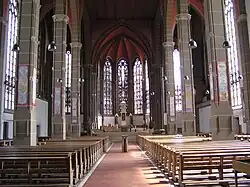Aus dem Travertin des früheren Sakramentsaltars und der Seitenaltäre haben Theo Heiermann und Elmar Hillebrand den neuen Altar gestaltet. Auch der Ambo ist aus Travertin mit einer Bronzekrone als Buchpult.[4]