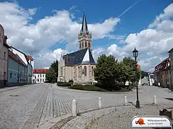 Die evangelisch-lutherische Kirche St. Pankratius steht inmitten der Stadt Lucka im Landkreis Altenburger Land in Thüringen.