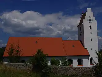 Die Saalkirche besteht aus einem eingezogenen romanischen Chor, der ursprünglich das Langhaus war, an den der spätgotische Chorturm aus der 2. Hälfte des 15. Jahrhunderts nach Osten angebaut war. Das heutige Langhaus wurde 1953/54 nach Westen an den heutigen Chor angefügt. Der Chorturms wurde im 18. Jahrhundert mit Geschossen aufgestockt, die den Glockenstuhl und die Turmuhr beherbergen. Außerdem wurde er quer mit einem Satteldach zwischen Staffelgiebeln bedeckt. Das Erdgeschoss des Chorturms ist mit einem Sterngewölbe überspannt, der heutige Chor mit einer Flachdecke. Zur Kirchenausstattung gehören der Hochaltar von 1712 und die Kanzel aus der 2. Hälfte des 17. Jahrhunderts.