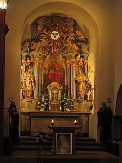 In der Kirche befinden sich auch Grab und Grabplatte des Fuldaer Chronisten Apollo von Vilbel († 1536). Er war hier Propst und zudem Abt des Klosters Limburg in der Pfalz.[18]