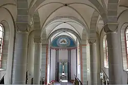 Die Bleiglasfenster wurden 1923 von der Glasmalerei Oidtmann in Linnich eingebaut.