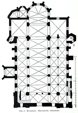 Die Seitenschiffe sind durch Spitzbogenarkaden vom Mittelschiff getrennt, wobei in halber Höhe eine Empore eingezogen ist. Ein Kreuzrippengewölbe schließt den Innenraum nach oben ab. Auffällig ist der vergleichsweise niedrige Ostteil, wodurch sich an der östlichen Wand über dem Triumphbogen eine große Wandfläche ergibt, die als Grundfläche für das Gemälde zum Jüngsten Gericht genutzt wurde.