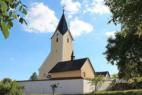 Auf dem Friedhof befindet sich ein mittelalterliches Steinkreuz, das ursprünglich an der Abzweigung der Straße nach Hofenstetten stand.[4]