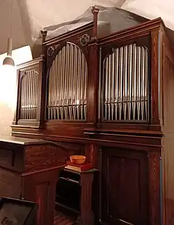 Die Orgel mit sechs Registern auf einem Manual und Pedal wurde 1893 von Franz Borgias Maerz mit mechanischen Kegelladen neu gebaut. Die Disposition lautet: