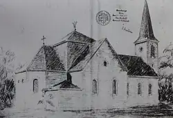 Die mittelalterliche Kirche der gotischen Epoche war dreischiffig und hatte ein höheres Mittelschiff. An den Chor war an der Südseite ein Turm und an der Nordseite eine Sakristei angebaut.[6] Die Kirche soll etwa 22,70 m lang und 13,25 m breit gewesen sein.[7]