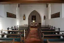 Der Innenraum des Chors bzw. das Erdgeschoss des Turms ist mit einem Kreuzrippengewölbe überspannt, der des Langhauses mit einer Holzbalkendecke. Der Chorbogen wird von den Skulpturen der Anna selbdritt und des Wendelin flankiert. Die Orgel auf der Empore wurde 1879 als Opus 75 von einem Orgelbauer der Familie Bittner errichtet.[1]
