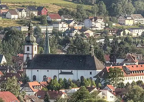 | St. Peter und Paul; rechts die ehemaligen Klostergebäude | |