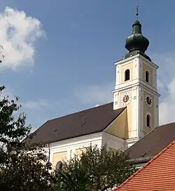 Die Kirche ist eine einschiffige nach Westen ausgerichtete Saalkirche mit eingezogenem Chor und einem Ostturm in der Mittelachse. Die klassizistische Ausstattung fertigte zwischen 1798 und 1801 Maurermeister Martin Desch aus Pfarrkirchen.