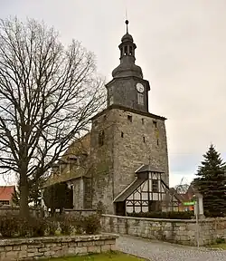 Die Dorfkirche befindet sich im südlichen Dorf am Rand einer Anhöhe zum Talkessel um Hohenfelden und Nauendorf.