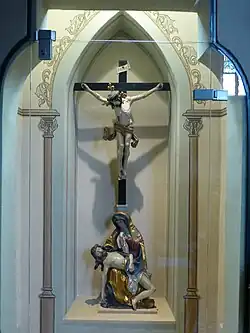Das in der Pfarrkirche aufgestellte Kreuz aus der Werkstatt Ivo Strigels war bereits bis zu ihrem Abriss im Jahre 1860 in der Pfarrkirche und wurde danach in den damaligen Pfarrhof übernommen. Seit 1949 befand sich das Kreuz in Memmingen, zuletzt in der Kirche Mariä Himmelfahrt und wurde später an die Pfarrkirche nach Zell zurückgegeben. Nach einer Restaurierung ist das Kreuz seit 2009 in der Kirche zu sehen. Die Pietà unter dem Kreuz stammt aus dem 16. Jahrhundert.