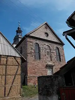 1831 wurde die Kirche an der Stelle eines abgerissenen Vorgängerbaus teilweise aus deren Abbruchmaterial errichtet. Sie wurde einschiffig mit eingezogenem Chorturm und Rundbogenfenstern gebaut. Das Äußere ist bis auf den verputzten Turmoberbau steinsichtig.