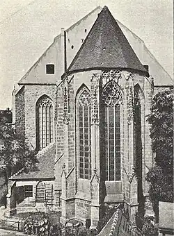 Um das Jahr 1400 wurde die Kirche, vermutlich auf Veranlassung des Erzbischofs Albrecht von Querfurt, zu einer dreischiffigen gotischen Hallenkirche umgebaut. Es entstand aus Sandstein eine fünfseitige Apsis, die man östlich des zunächst bestehenbleibenden Altbaus errichtete. Die Mittelachse der Kirche wurde deutlich nach Süden verlegt. Die Apsis wird wegen ihrer Gestaltung und der durch die fünf hohen, die Wände vollständig einnehmenden Fenster, erzielten Wirkung als die schönste Apsis der Magdeburger Pfarrkirchen angesehen. In den späteren Bauphasen, so beim Langhaus und beim Chor, wurde sparsamer gebaut. Überwiegend kam nun Grauwacke zum Einsatz, nur für Fenster und Verzierungen wurde weiter Sandstein verwandt.