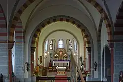 Die Bleiglasfenster wurden 1901 von der Glasmalerei Oidtmann in Linnich geschaffen.