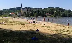 Nach 1945 wurde die deutschsprachige Bevölkerung vertrieben und die Kircheneinrichtung von den Kommunisten zerstört. Lediglich der aus dem 16. Jahrhundert stammende Opferstock aus Granit ist erhalten geblieben. Durch den Bau des Moldaustausees in den 1950er Jahren wurden tiefer gelegene Ortsteile abgetragen, so dass die Kirche heute direkt am Seeufer steht.